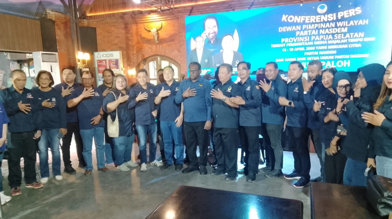 “Kami menilai pemberitaan telah melampaui batas etika jurnalistik, mengandung narasi yang tendensius, bersifat opini yang menyudutkan, berpotensi merusak citra institusi Partai Nasdem dan nama baik Ketua Umum kami, Bapak H.Surya Paloh,” katanya ketika membacakan tujuh poin pernyataan sikap secara resmi dalam Konferensi Pers, di Foodland Merauke, Jum’at (17/4/26).